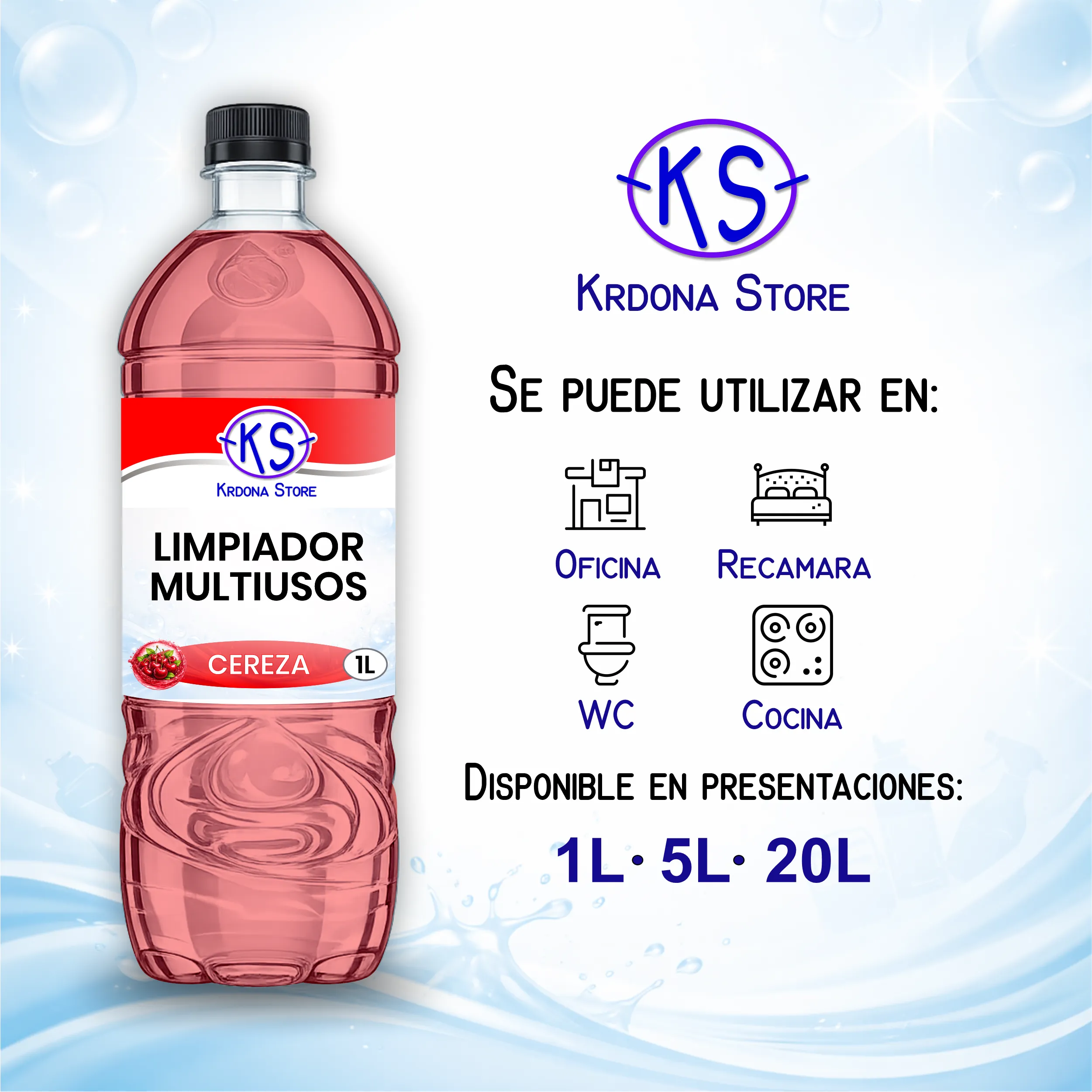 Un limpiador que combina eficacia y delicadeza, ideal para mantener su hogar impecable con un sutil aroma a cereza que envuelve los espacios. Elegancia y frescura en cada uso para una experiencia de limpieza placentera. 🍒✨